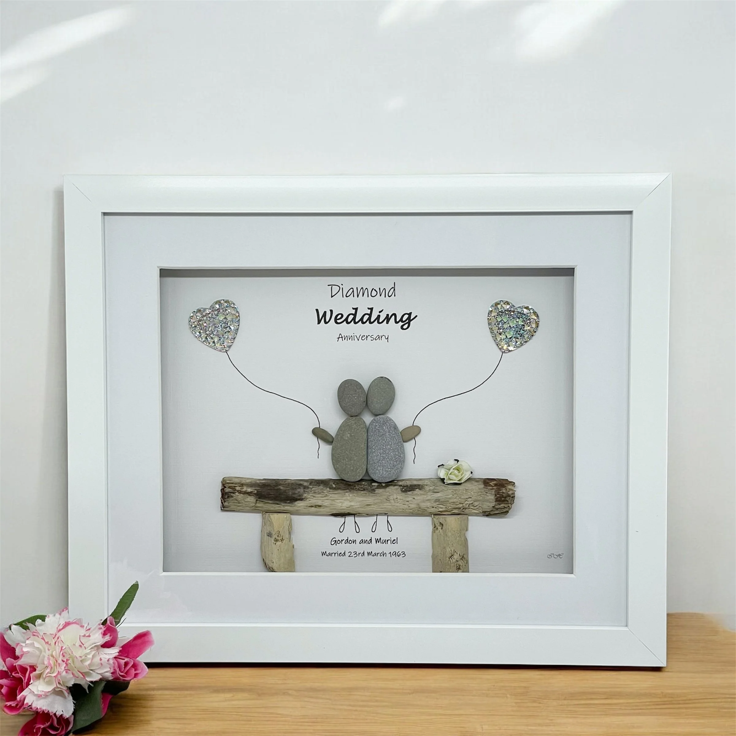 A thoughtful gift for the ‘Mother of the Bride’ This picture features the Mum and Bride together on driftwood and will be a long lasting keepsake of her daughters special day. The bride wears a little sea glass veil and holds her bouquet. The quote reads: A Mother’s job is to teach her children not to need her, the hardest part is letting go’ this picture is personalised with the wedding date. The pebbles and driftwood colours may vary from from example.
